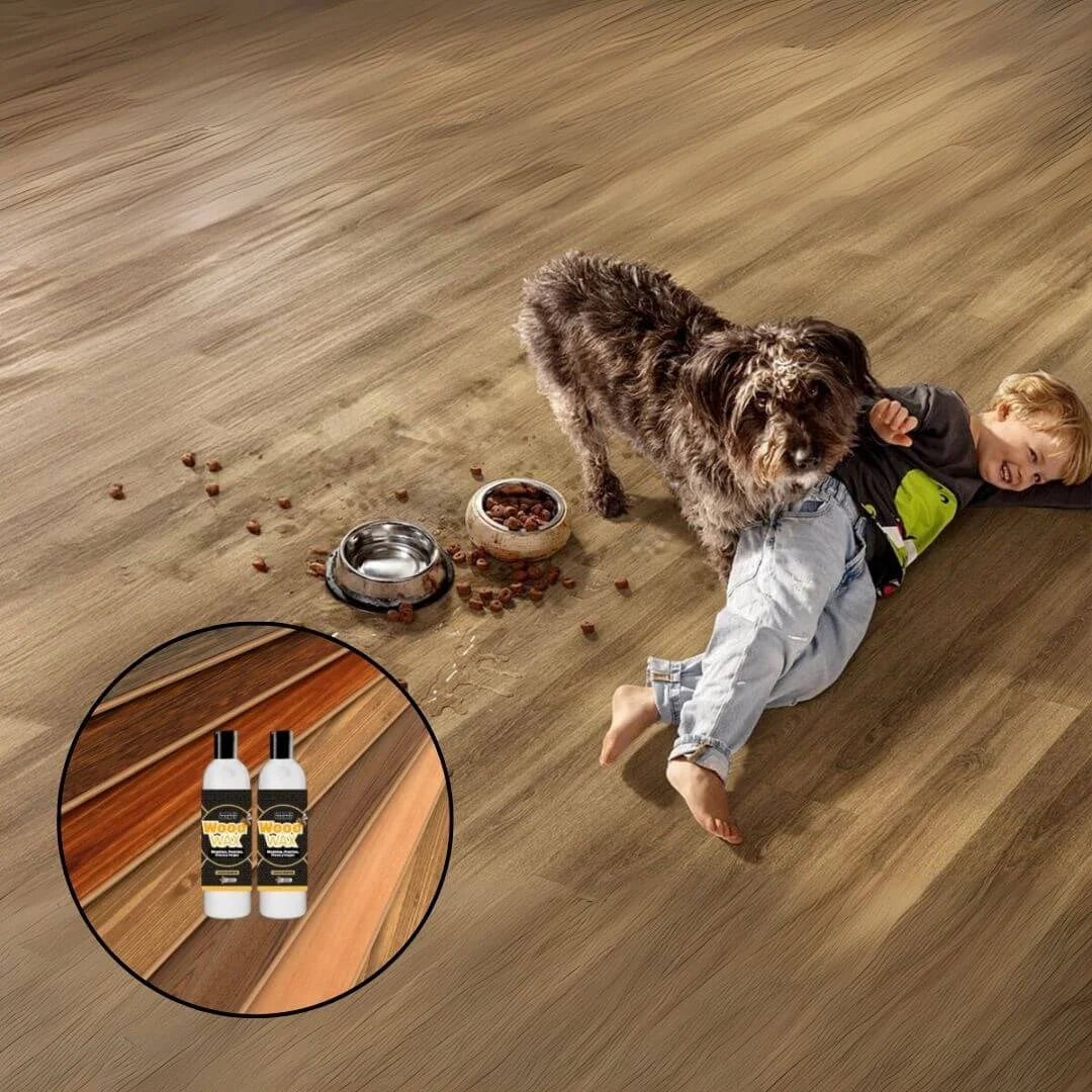 Restaurador a base de cera de abeja que hidrata y devuelve el color natural de tus pisos dejándolos nuevos sin pagar remodelaciones.