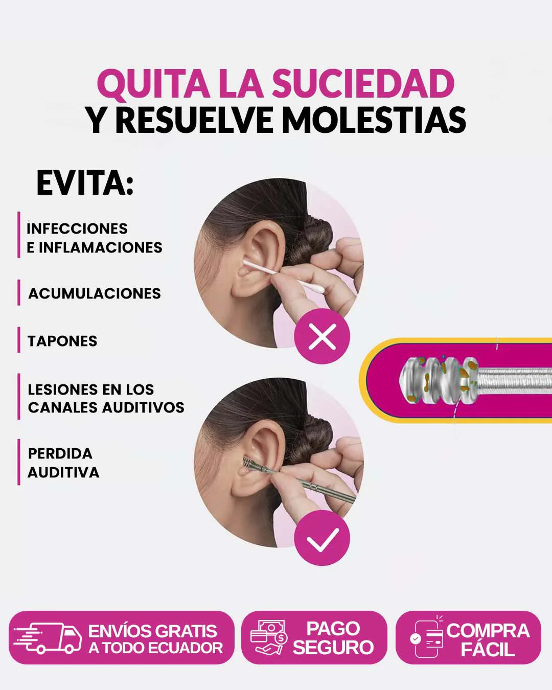 Evita el uso de hisopos que empujan la cera y causan infecciones.