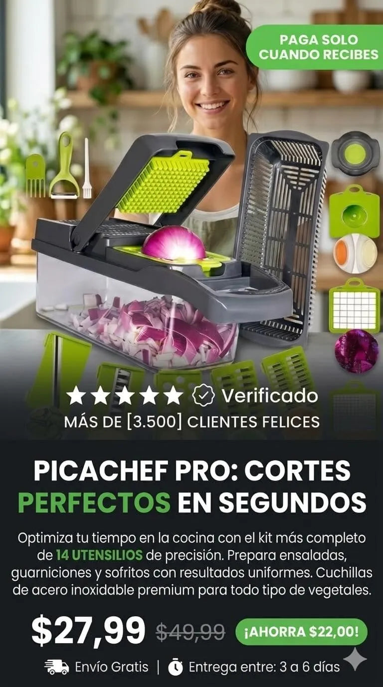 Ahorro de tiempo al cocinarMuchos clientes comentan que ahora preparan ensaladas, sofritos y guarniciones en mucho menos tiempo que antes.