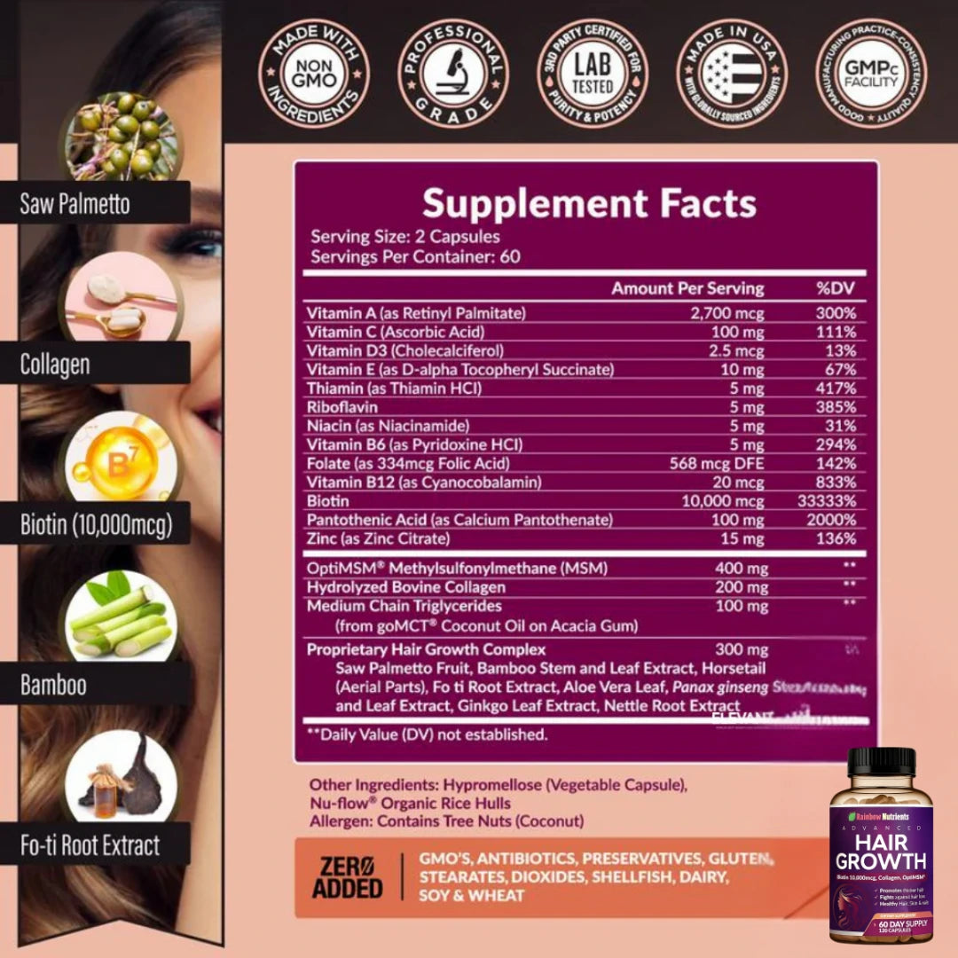 Rainutre™ Vitaminas Avanzadas 24 en 1 para el Crecimiento del Cabello